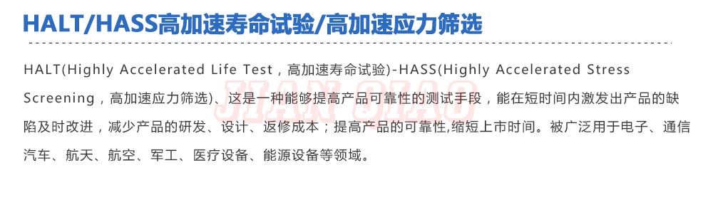用途:HALT(Highly?Accelerated?Life?Test,高加速壽命試驗)-HASS(Highly?Accelerated?Stress?Screening,高加速應(yīng)力篩選)、這是一種能夠提高產(chǎn)品可靠性的測試手段,能在短時間內(nèi)激發(fā)出產(chǎn)品的缺陷及時改進