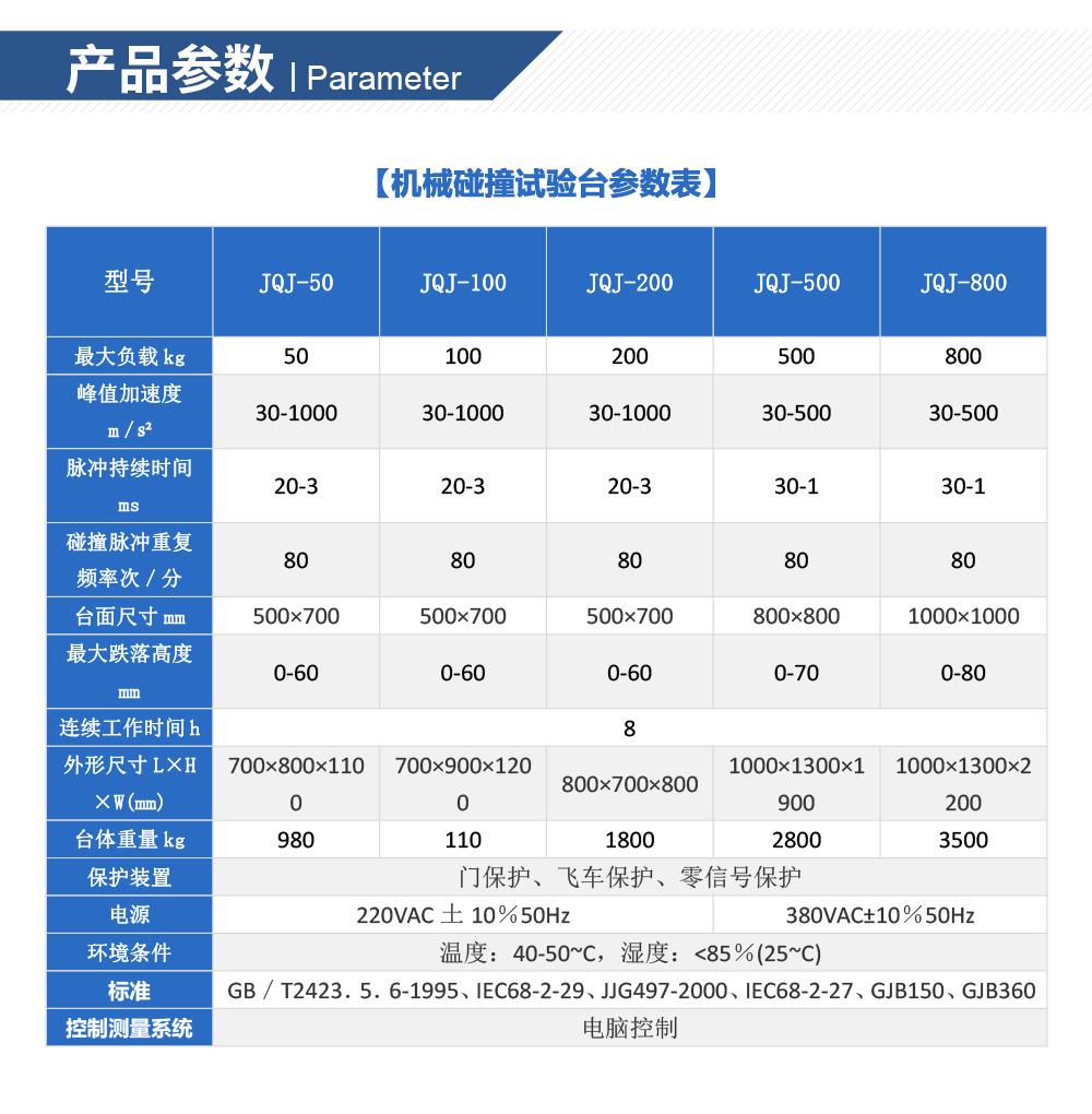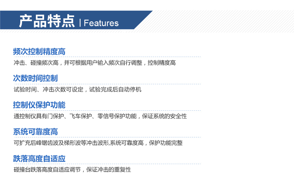 用途:機械碰撞試驗臺模擬仿真裝備及組件在使用與運輸過程中,可能遭遇的沖擊效應為主,并透過沖擊波于瞬間瞬時能量交換,分析產(chǎn)品承受外界沖擊環(huán)境之能力,試驗之目的在于了解其機